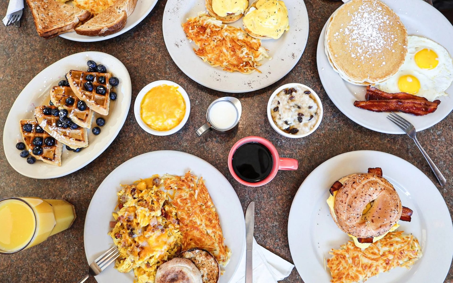 Satisfy lunch cravings with our convenient pickup and delivery options. Enjoy American classics like sandwiches and salads, or go for breakfast favorites such as pancakes and bagels. Our family-friendly diner also offers catering for larger gatherings. Order now for a delicious lunch at home or the office.